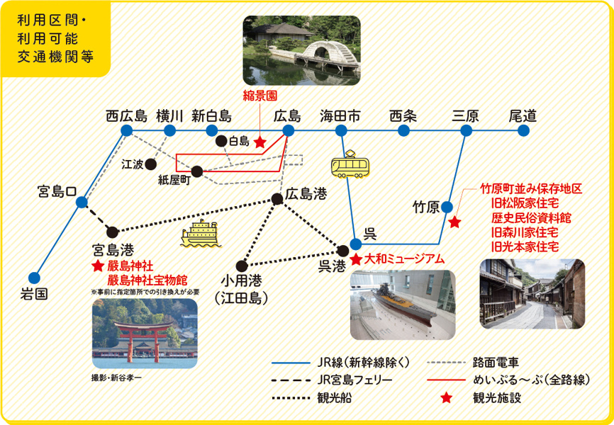 岩国・柳井・周南・三原・竹原・広島・宮島・呉・江田島