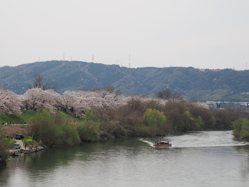 数ある桜の名所の中でも有名な「淀川河川公園背割堤地区」。 京都府八幡市の宇治川と木津川の合流部分にあり、約1.4kmに約220本のソメイヨシノが咲き誇る姿は圧巻です。 お花見を満喫できる遊覧船です。 ※運航期間は桜の開花予報・状況及び河川状況により変動します。