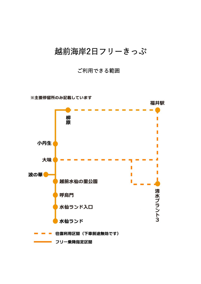 【2026年4月1日~】 越前海岸エリアの観光に! 指定区間で二日間乗り降り自由のフリーきっぷです。