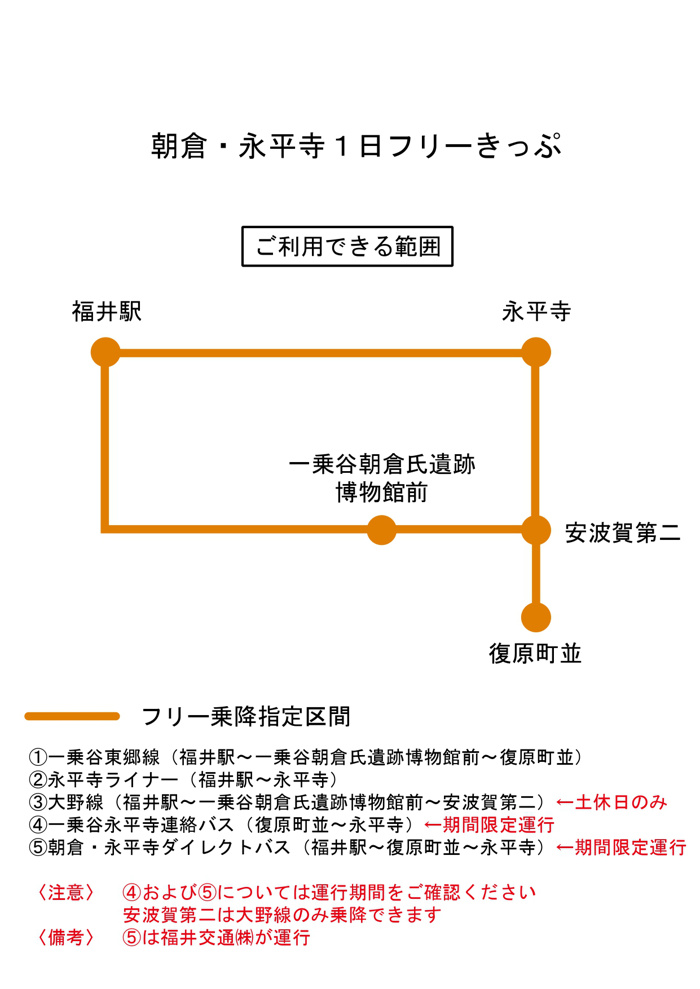 【2026年4月1日~】 一乗谷朝倉氏遺跡と永平寺エリア、両方回るならこれ1枚でOK! 指定区間内で乗り降り自由の1日フリーきっぷです。