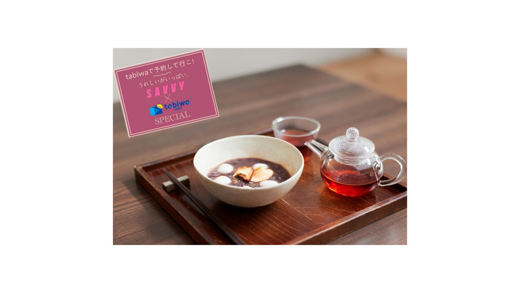 【ほっこり、からだ温まる和漢チャイと林檎と生姜の十五穀米ぜんざい】 まもなく創業100年を迎える老舗甘味処【梅園】が手がける、カフェ&ギャラリー。抹茶のホットケーキなど、現代的なスイーツがそろうなか、今回は特別にぜんざいと和漢チャイのセットを考案。ぜんざいには、リンゴ、十五穀米を合わせ、あっさりした小豆の甘みにショウガを利かせて、食べ終わった後は体がじんわり温まる。セットのドリンクは、東京の【漢方杉本薬局】が手がける和漢チャイをtabiwaプランの実施期間中は同薬局を主宰する杉本格朗さんによる写真展と漢方茶の販売も開催。さらにtabiwa予約限定であんマドレーヌのお土産付。