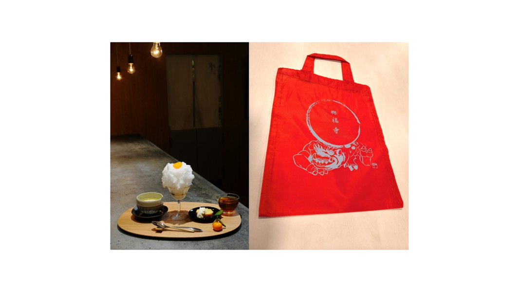 興福寺産の橘を使った、かき氷をほうせき箱らしいスイーツセットにしました。 【ご購入のお客様には、記念特典として興福寺様のオリジナルエコバッグをお渡しさせていただきます。】